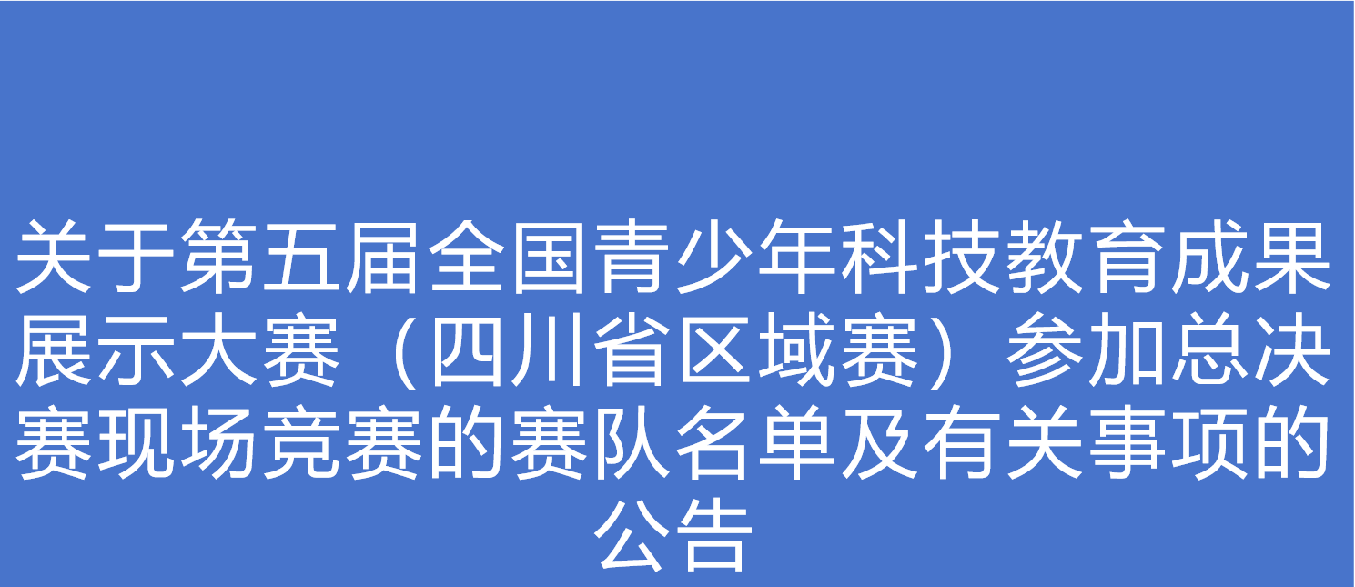 各参赛赛队、学校、家长及学生:第五届(2024-2025学年)全国青少年科技教育成果展示大赛四川省区域赛已圆满结束。根据四川省关心下一代工作委员会《关于组织举办第五届全国青少年科技教育成果展示大赛四川