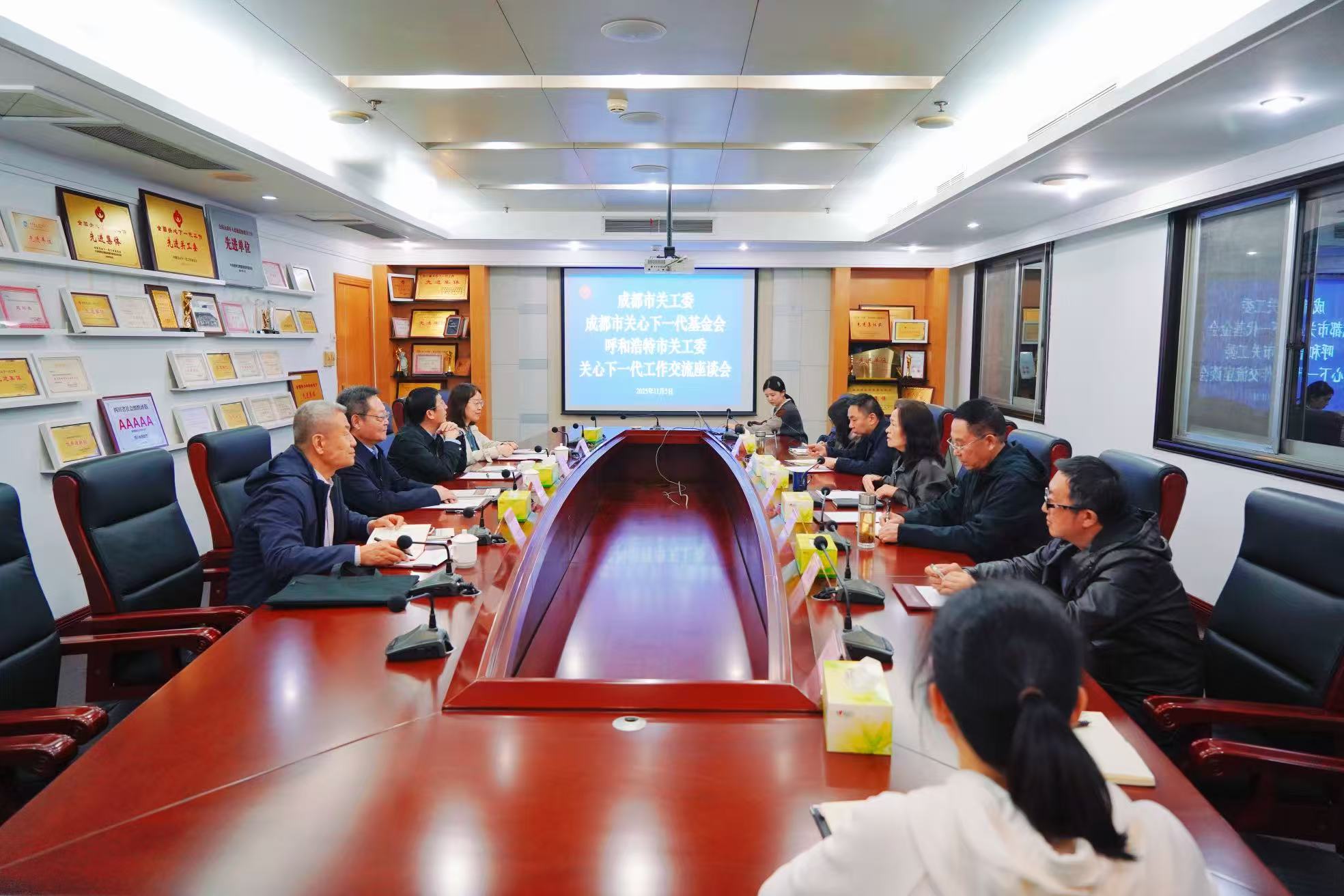 11月5日,呼和浩特市关工委副主任、秘书长李抚沧一行赴成都市考察交流,重点学习成都市关心下一代基金会开展关爱工作方面的经验。 座谈会上,双方就关心下一代工作进行了深入交流。受成都市关工委执