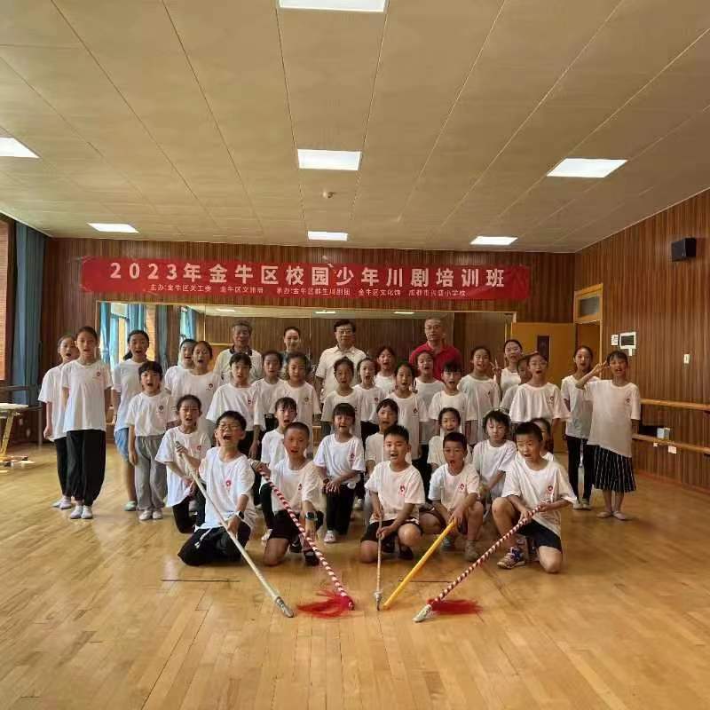 为进一步深入推动川剧在青少年中传播,引导青少年接受优秀民族文化熏陶、培养川剧兴趣爱好。基金会联合金牛区关工委,在兴盛小学校开展青少年川剧培训班,从川剧表演的“手、 眼、身、法、步”等基本要领入手,从川