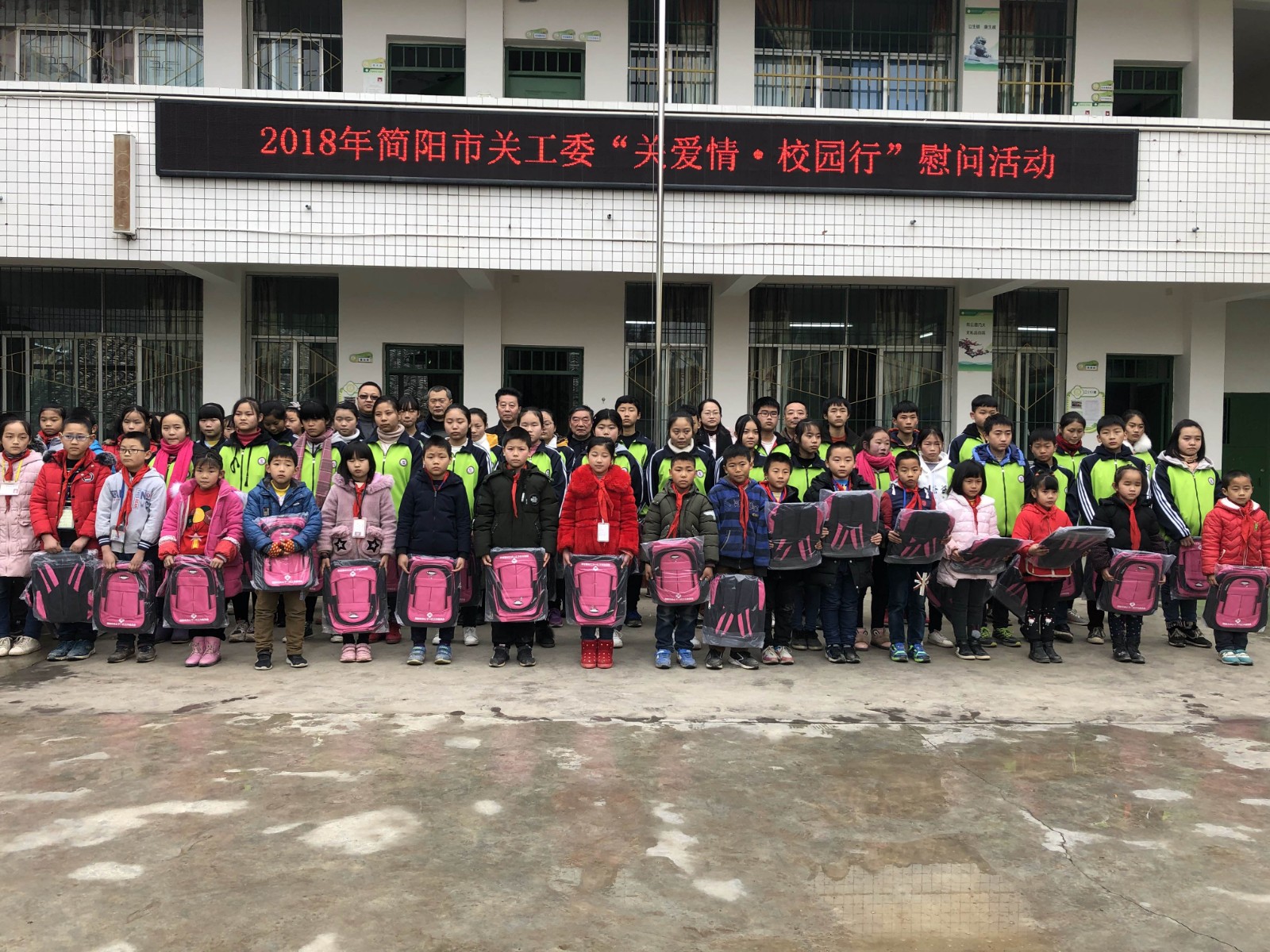 该项目面向简阳市26个乡镇、街道的70所中小学校开展校园慰问,座谈交流、心理辅导、品德教育、捐赠书包等多种形式的关爱活动,并为1538名城乡经济困难家庭青少年、留守(流动)儿童、军烈属子女、服刑在教人员子女、品学兼优学生等捐赠书包1538个,项目实施费用共计10万元。