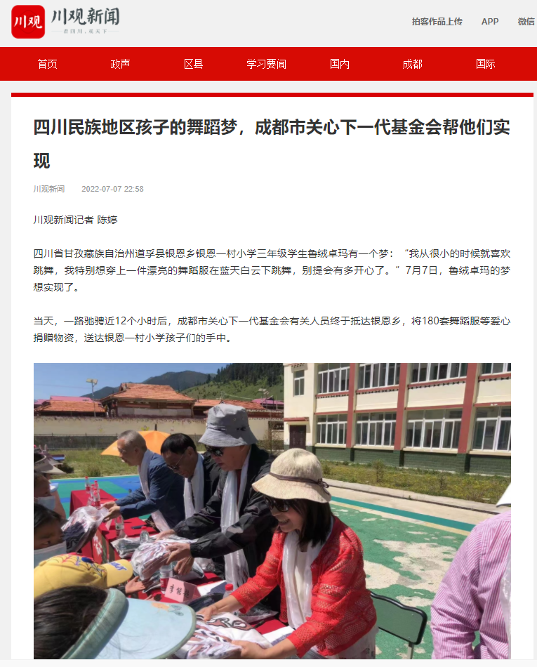 四川观察、今日头条对基金会实施的“高原藏区孩子舞蹈梦”公益项目进行宣传报道