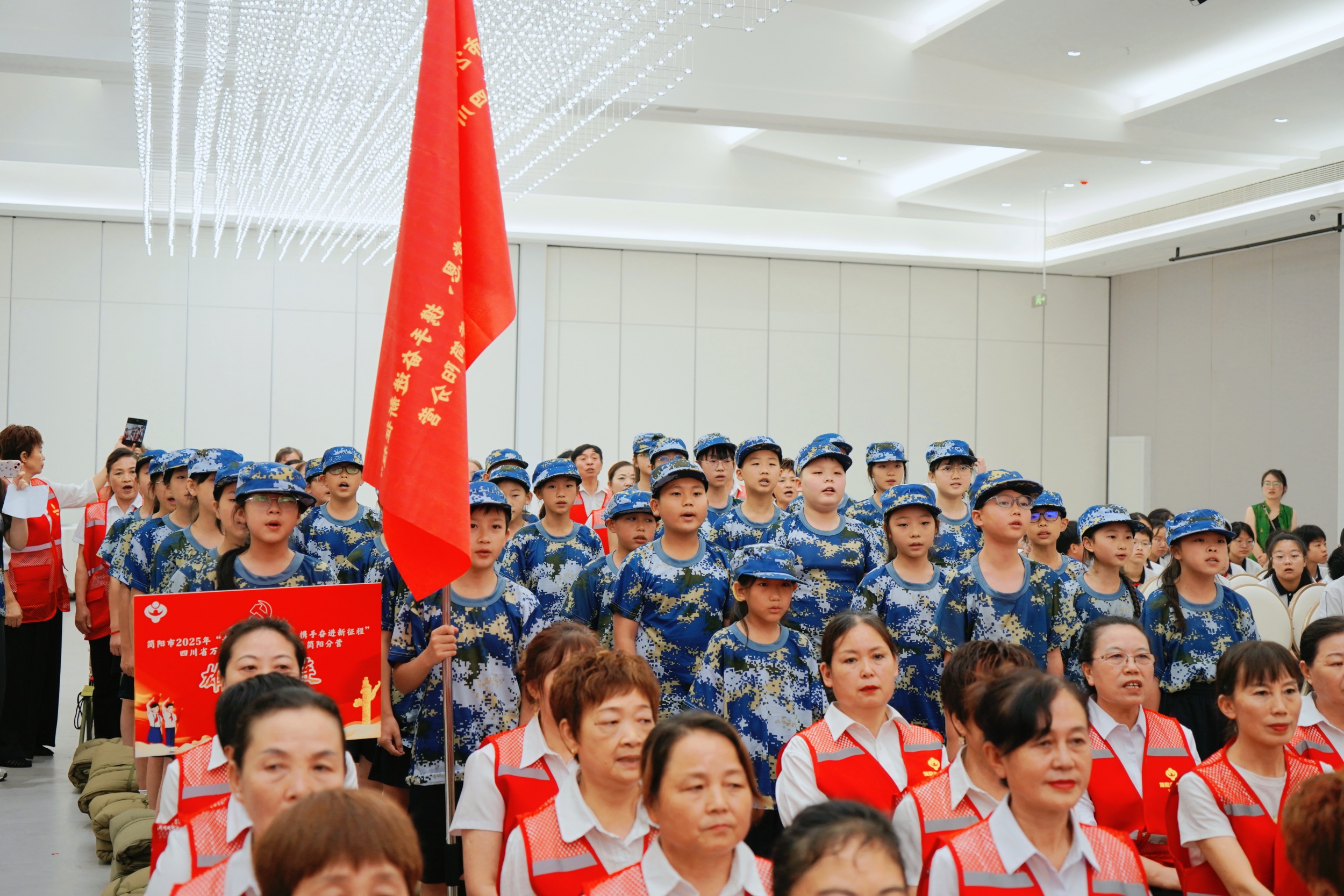 7月3日,“老少同声颂党恩,携手奋进新征程”2025年四川省万名青少年夏令营成都分营开营仪式在简阳市举行。市关工委副主任,市关心下一代基金会党支部书记、理事长廖励出席活动并宣布开营,简阳市政协副主席、关工委副主任曾继元,关工委执行主任赵燕鹰,市教育局等相关部门领导出席开营仪式,“五老”代表,500名营员及夏令营辅导老师代表参加仪式。