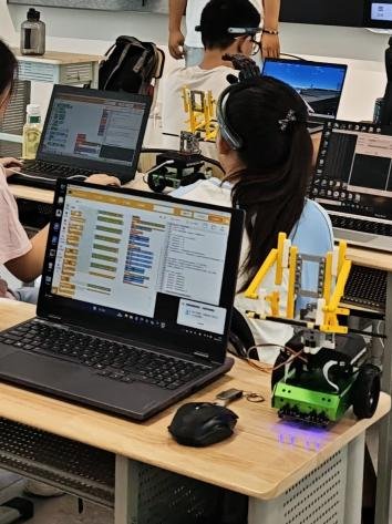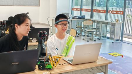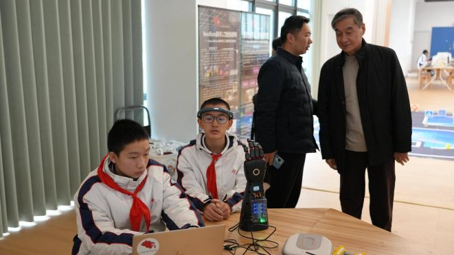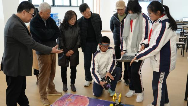 下午2时许,验收组在新区关工委领导及成都市七中育才学校科学城分校校长姜向阳、副校长何玉明的陪同下,参观校园并深入了解学校设施建设、课程开展等情况后,进入脑科学项目现场,实地查看了项目实施的硬件设施、活动开展场景及成果展示,详细了解学校脑科学项目的设计理念、推进过程和实际成效。